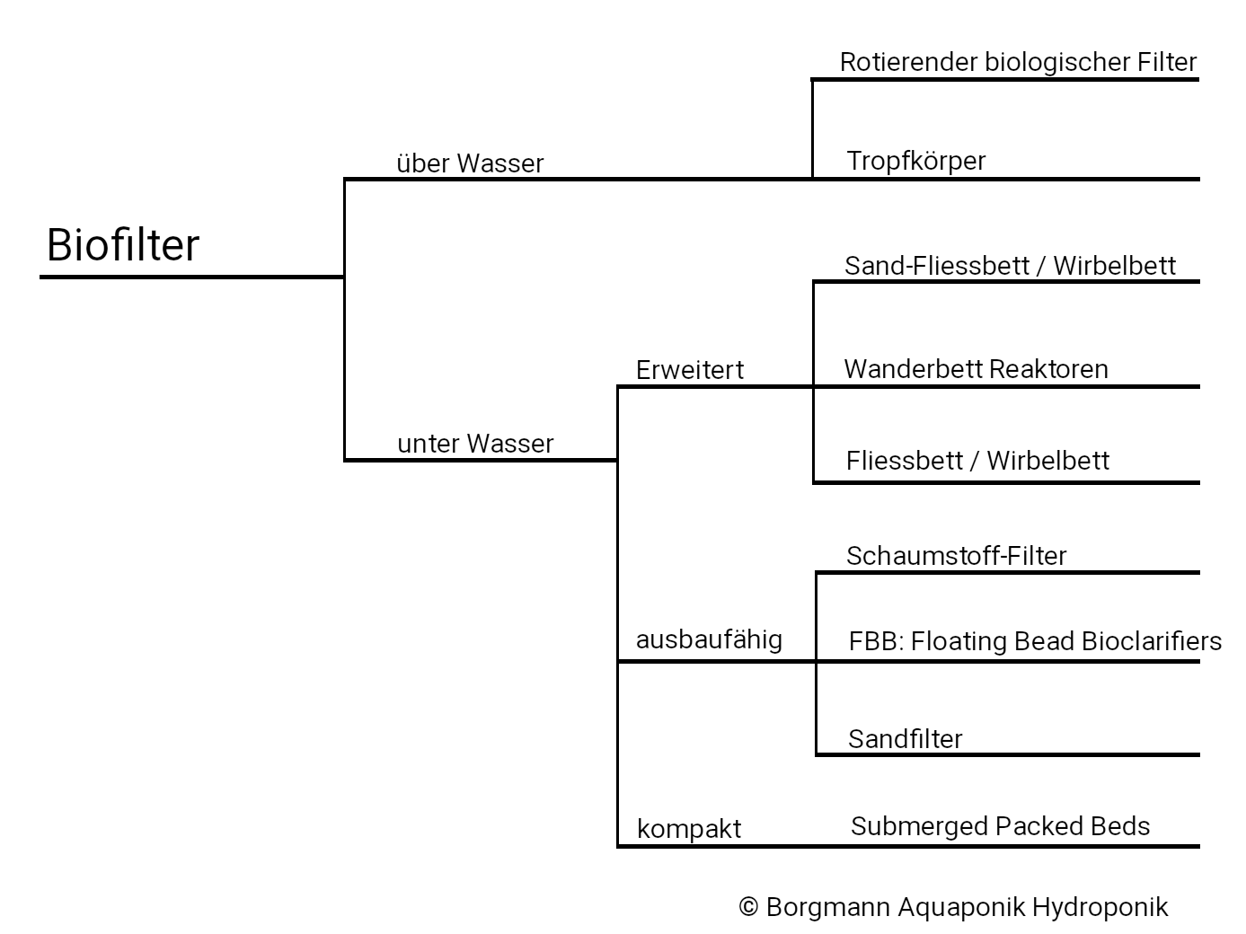Ein Biofilter filtert zum einen physikalisch unerwünschte Feststoffe und zum Anderen verwandelt er mit Hilfe von Mikroorganismen u.a. das Ammoniak aus den Fisch-Ausscheidungen in Nitrat, was somit von den Pflanzen als Dünger verwendet werden kann.
