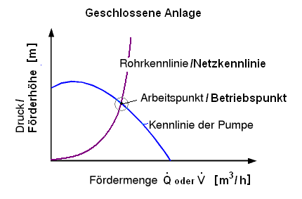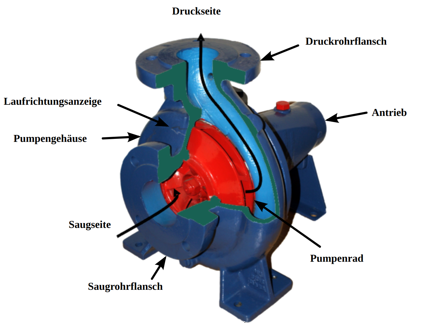 DifferenzdruckregelungHier wird Drehzahl und Leistung automatisch dem Bedarf an umgewälztem Wasser angepasst. Dazu wird die Druckdifferenz zwischen Saug- und Druckseite ermittelt und die Motordrehzahl und damit die Leistung so gesteuert, dass der Differenzdruck weitestgehend konstant bleibt. Der Differenzdruck ist anlagenspezifisch und entsteht durch Reibung des umgewälzten Wasserstromes an den Rohrwandungen und durch Richtungswechsel an jedem Bogen. Der notwendige Differenzdruck wird häufig bei elektronisch geregelten Pumpen als Förderhöhe in der seit den späten 1970er Jahren nicht mehr gesetzlich konformen Einheit Meter Wassersäule (mWS) angegeben. 10,2 mWS entsprechen 1 bar. Damit ist in geschlossenen Systemen nicht die Anlagenhöhe gemeint, sondern es ist lediglich ein Maß für die Überwindung des Strömungswiderstandes der Gesamtanlage bei gegebener Durchflussmenge. Volumenstromabhängige DifferenzdruckregelungHier wird der Sollwert des Differenzdruckes in Abhängigkeit vom Volumenstrom verändert. Diese Regelung berücksichtigt, dass in der Heizungsanlage je nach Bedarf (Abnahme an Wärmeenergie) eine unterschiedliche Menge an warmem Wasser erforderlich wird, um die erforderliche Wärmeleistung in den Hausanschlussstationen bereitzustellen. Sie lohnt sich bei Umwälzpumpen, die größere Heiznetze versorgen und daher einen hohen Energiebedarf (ab 5 Kilowatt elektrisch) aufweisen. Dort spielen die Reibungsverluste des Wassers durch die Umwälzung im Rohrleitungssystem eine größere Rolle. Energiesparende UmwälzpumpenBesonders energiesparende Umwälzpumpen (Hocheffizienzpumpen) mit einer selbsttätigen elektronischen Regelung bis herunter zu 5 Watt sind in der Anschaffung zwar teurer als konventionelle Umwälzpumpen mit 40–100 Watt konstanter Leistungsaufnahme, was sich durch geringeren Stromverbrauch amortisieren kann. Zwischen 2005 und 2012 gab es für Umwälzpumpen ein Energielabel. Seit 2013 macht die aufgrund der Ökodesign-Richtlinie ergangene VO (EU) 642/2009 verbindliche Vorgaben über den Energieeffizienz-Index von Umwälzpumpen. Entsprechende Modelle sind mit dem Kürzel „ErP ready“ gekennzeichnet. Da viele Pumpen während der Heizperiode in der Regel permanent mit konstant hoher Leistungsaufnahme in Betrieb sind, sind sie neben veralteten, schlecht isolierten Kühlgeräten die Hauptverursacher eines erhöhten Stromverbrauchs im Haushalt. Eine Heizungspumpe kann bis zu 20 Jahren in Betrieb bleiben. Bei einer Betriebsdauer von rund 7 Monaten jährlich (210 Tage = 5040 Stunden) benötigt eine alte Umwälzpumpe mit 85 bis 130 Watt Leistungsaufnahme 428–655 kWh an elektrischer Energie – eine geregelte Hocheffizienzpumpe (7–25 Watt Leistung) dagegen nur 35–126 kWh.[3] Wenn pro Heizperiode 400 kWh nicht verbraucht werden, spart eine Hocheffizienzpumpe bei einem Strompreis von 27 ct/kWh jährlich 108 Euro Energiekosten. Das sind 1.620 Euro bei einer angenommenen Betriebsdauer von 15 Jahren – Verzinsung und Strompreissteigerungen nicht berücksichtigt. Quelle: https://de.wikipedia.org/wiki/Umw%C3%A4lzpumpe_(Heiztechnik)